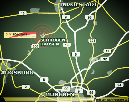 Via A8 von Abfahrt Augsburg - Dasing kommend, auf die B300 auffahren, Richtung Aichach - Schrobenhausen - Ingolstadt bis Ausfahrt Schrobenhausen - Mühlried - , dann Mitterweg und Alte Dorfstrasse folgen bis Kreuzung Königslachener Weg, dann links abbiegen